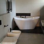 - biały montaż – instalacja sanitariatów: umywalki, zestawu podtynkowego, bidetu, kabiny prysznicowej z brodzikiem lub odpływem linowym.