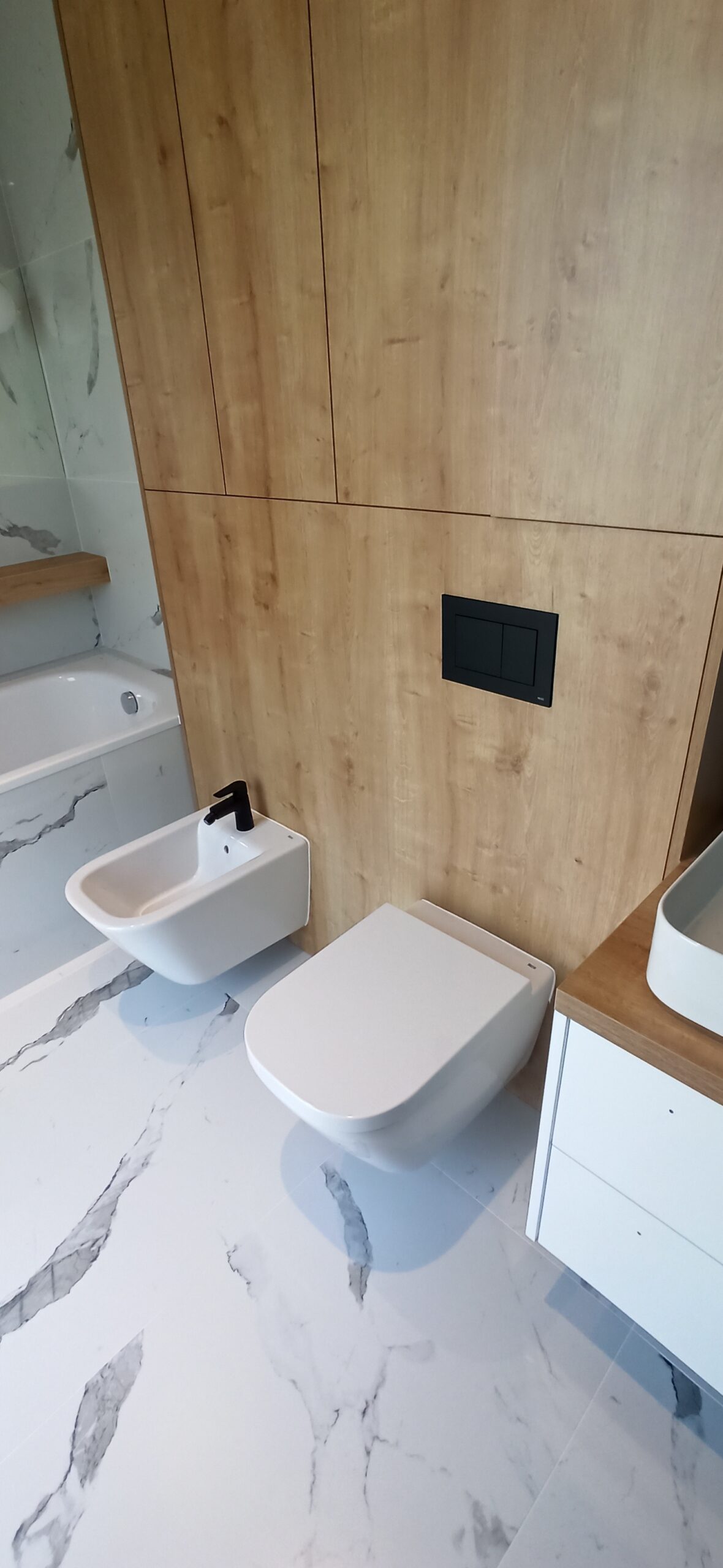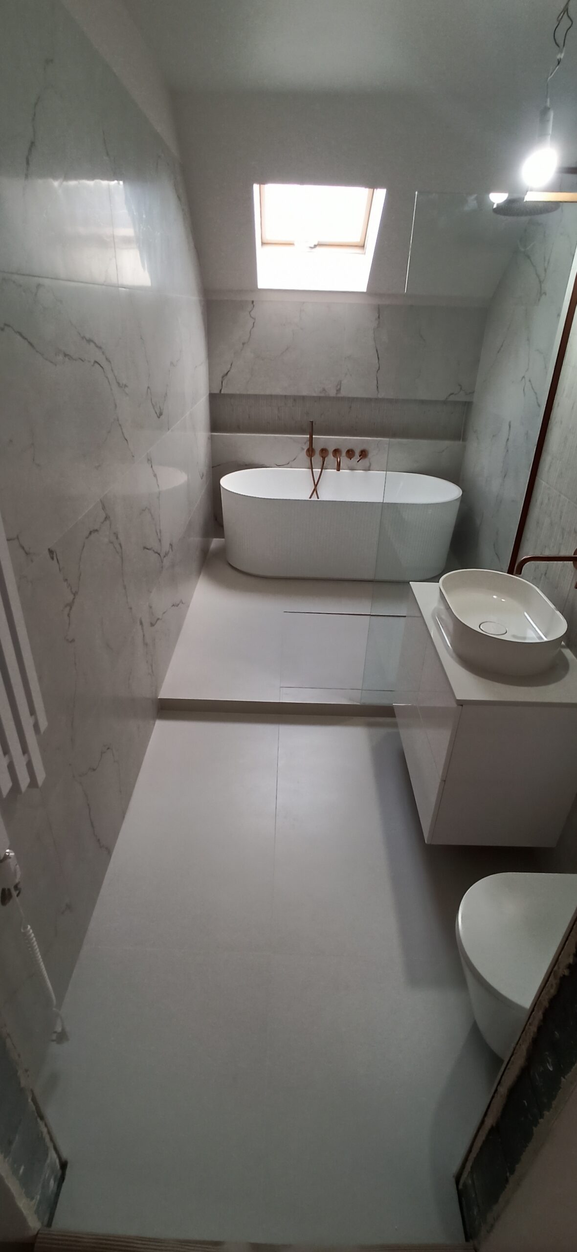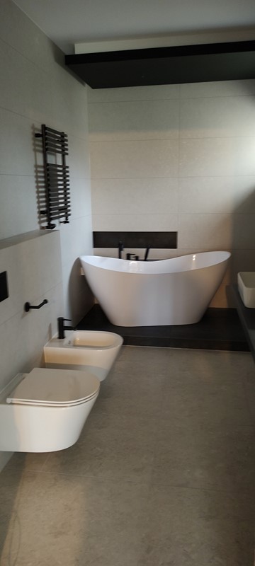 - biały montaż – instalacja sanitariatów: umywalki, zestawu podtynkowego, bidetu, kabiny prysznicowej z brodzikiem lub odpływem linowym.