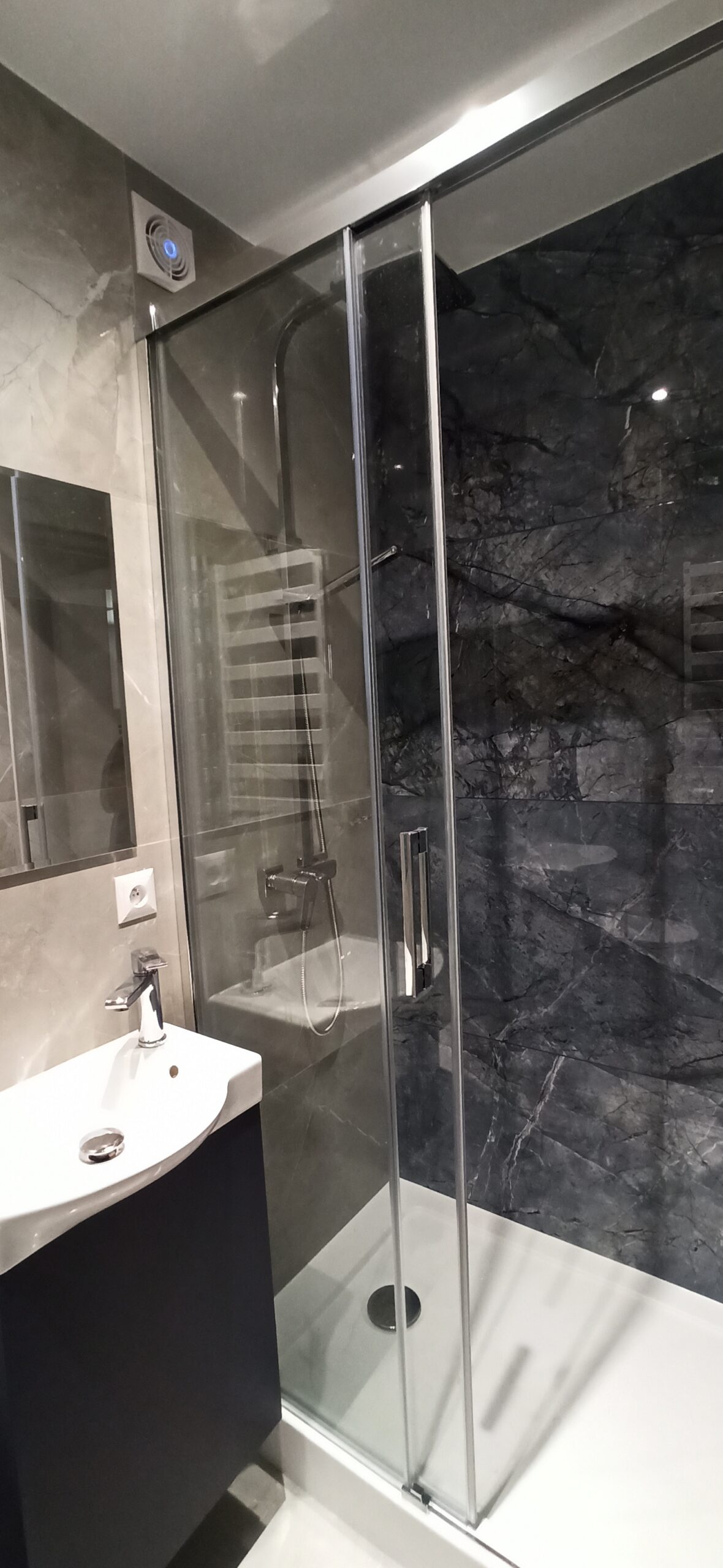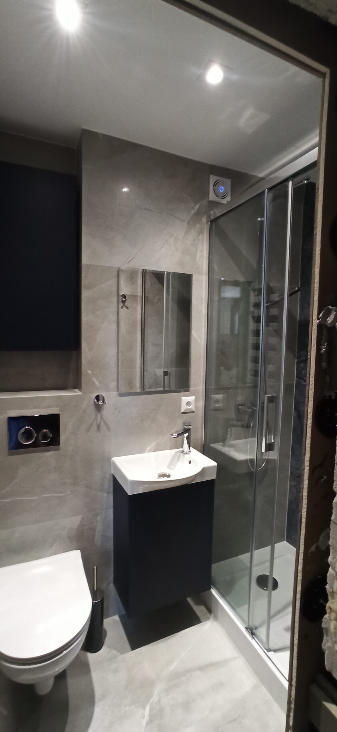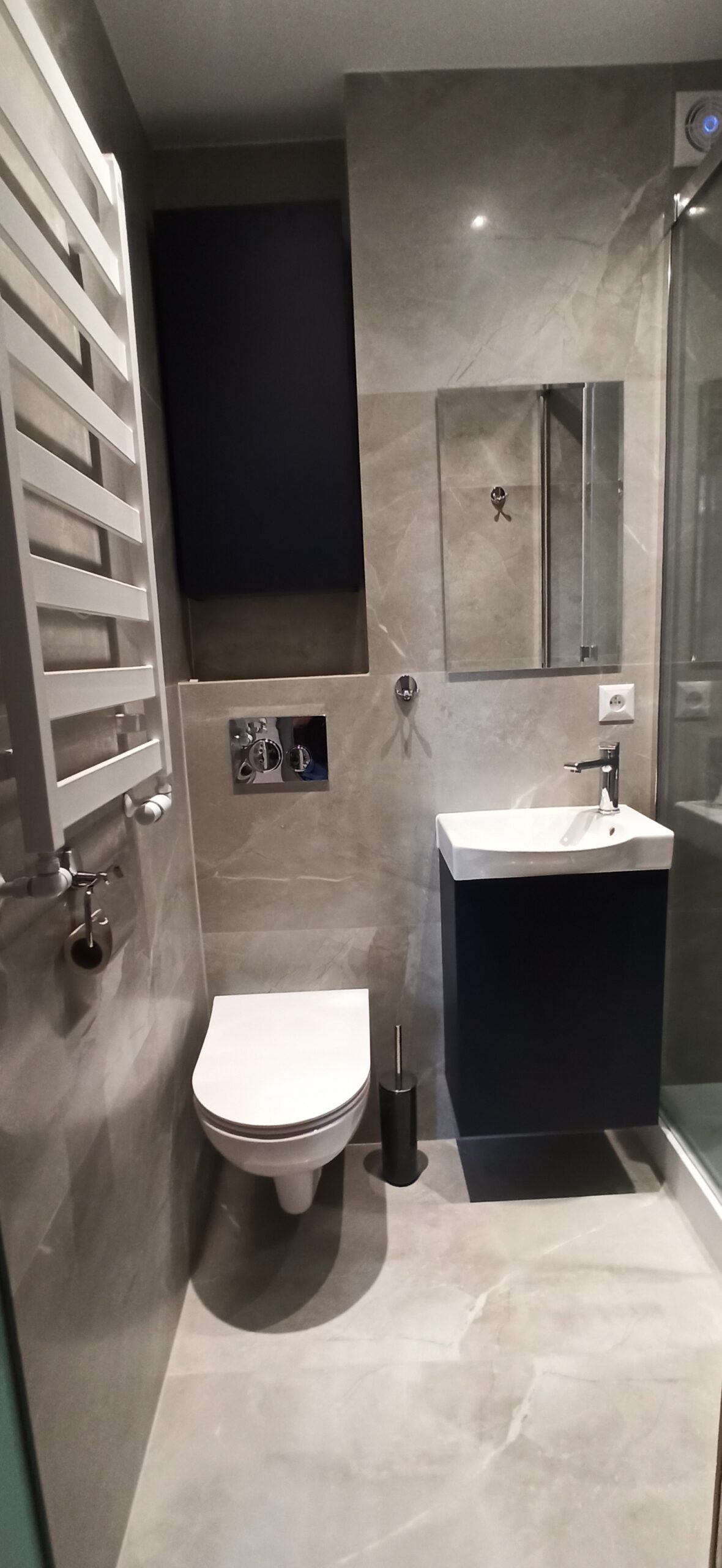 - biały montaż – instalacja sanitariatów: umywalki, zestawu podtynkowego, bidetu, kabiny prysznicowej z brodzikiem lub odpływem linowym.
